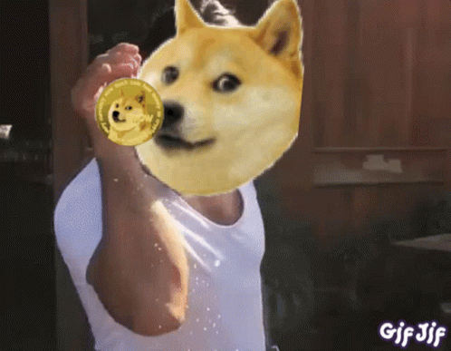 A Doge meme head is superimposed on the 'Salt Bae' chef, sprinkling Dogecoin, a popular cryptocurrency.