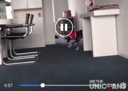 A small black dog wearing a Santa hat and shoes struggles to run across a room.