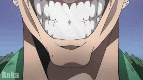 Close-up of Dr. Livesey's iconic wide grin, featuring his prominent white teeth and a 'Baka' watermark.