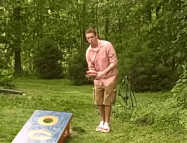 Dolfans NYC fan at a Miami Dolphins tailgate, featuring a 'Super Bowl Champions Two Time' cornhole board.