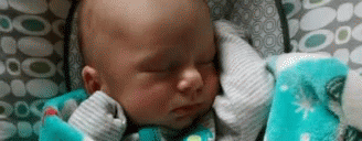 Dom Baby sleeping peacefully in a close-up shot, nestled against a soft white blanket.