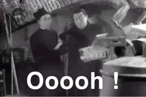 Don Camillo and Peppone, played by Fernandel, react with a surprised 'Ooooh!' in this classic scene.