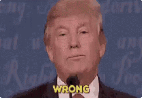 Donald Trump speaking into a microphone with the word 'Wrong' displayed on screen.