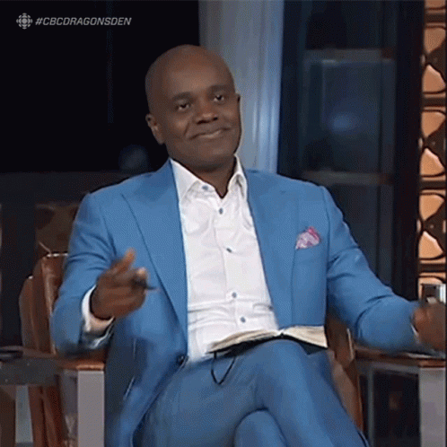 Wes Hall, the King of Bay Street, gives a thumbs up and points, signaling a deal is done on CBC's Dragons' Den.