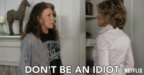 Frankie (Lily Tomlin) tells someone 'Don't Be An Idiot' in a scene from Grace and Frankie.