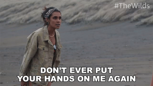 Fatin Jadmani confronts another woman on a beach, warning her, 'Don't ever put your hands on me again.'