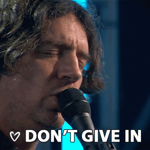 Gary Lightbody of Snow Patrol passionately sings 'Don't Give In' into a microphone on stage.
