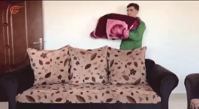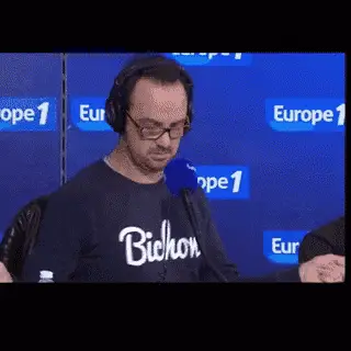 Doodybeard, wearing a Santa hat and headphones, performs a lively hand dance, waving his hands energetically.