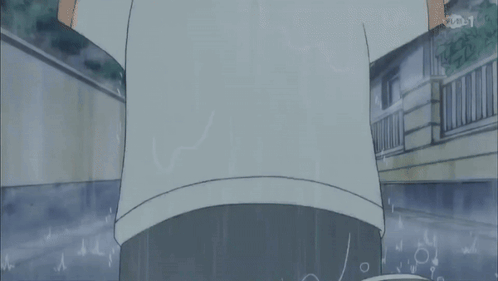 a cartoon of a boy holding his head in the rain with the letters bn on the bottom right