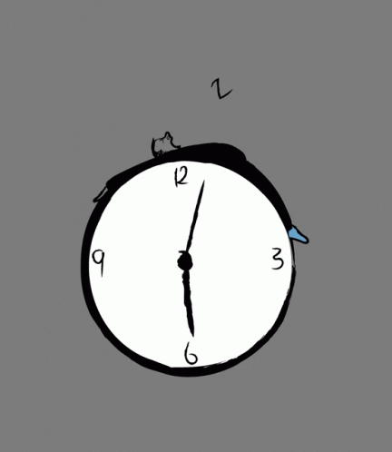 An animated clock with a sleeping person on top, showing time passing from 6 AM to 7 AM.