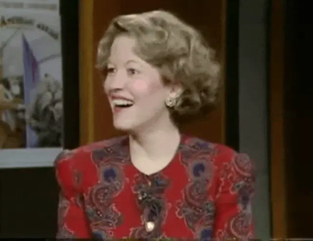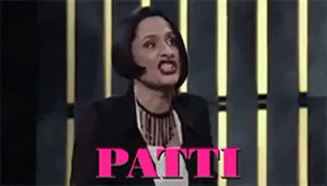 Doydeh Farlih speaks passionately, gesturing with her hands in front of a pink building.