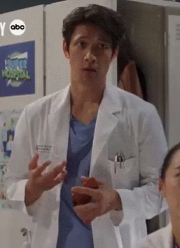 Dr. Benson, played by Harry Shum Jr., in Grey's Anatomy, looking concerned in a hospital setting.