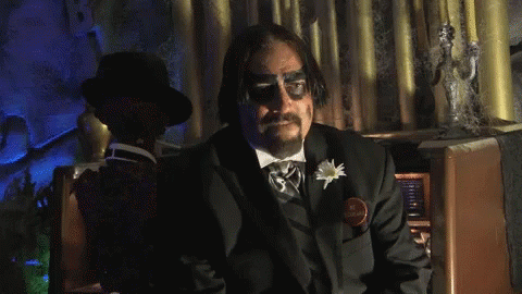 Dr Paul Bearer, in a suit with an 'I'M A CANDIDATE' button, looks confused and bewildered.