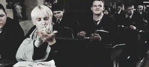Draco Malfoy, from Harry Potter, skillfully creates a paper bird during a classroom session.