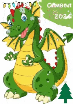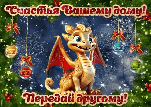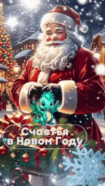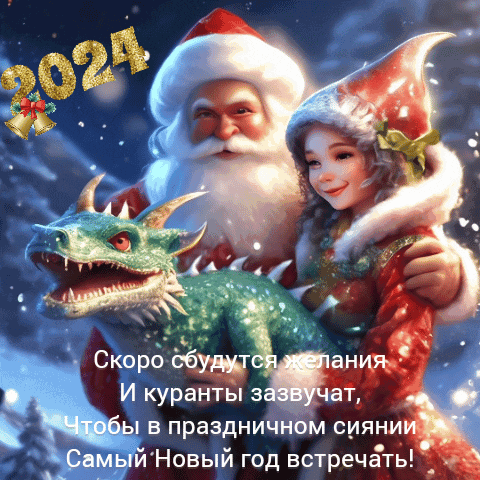 Santa Claus, a girl, and a dragon celebrate New Year 2024 with festive wishes and a beautiful poem.