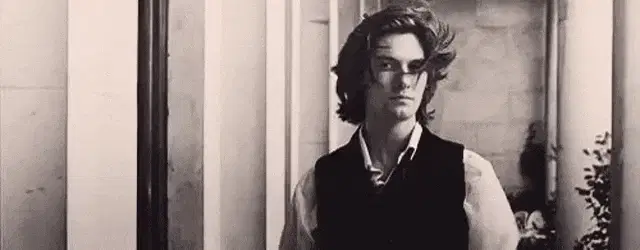 A red Teletubby dramatically falls backward and lands flat on its back in a grassy, hilly landscape.