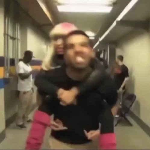 Drake carries Nicki Minaj on his back through a hallway, a classic Dricki Champagnebarbie moment.