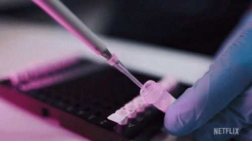A gloved hand uses a pipette to transfer liquid samples into microcentrifuge tubes in a lab setting.