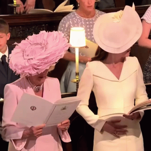 Duchess Camilla and Kate Middleton attend a royal service, both wearing elegant hats and holding books.