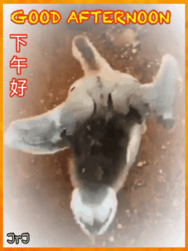A duck flaps its wings in water, with 'GOOD AFTERNOON' and Chinese characters '下午好' displayed.