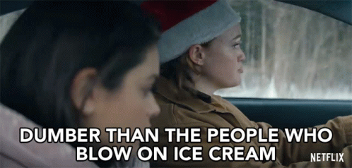 A woman in a Santa hat makes a humorous observation about people blowing on ice cream before they eat it.
