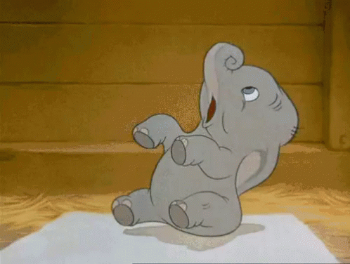 Dumbo, the baby elephant with big ears, prepares to sneeze, then lets out an adorable 'achoo!'
