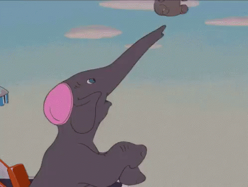 Dumbo and his mother, Mrs. Jumbo, share a tender hug, with the heartfelt message 'I love you, mom' displayed.