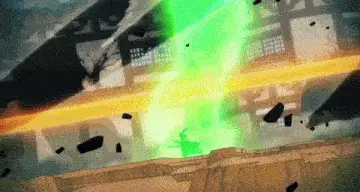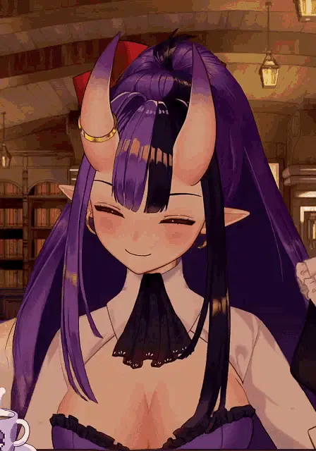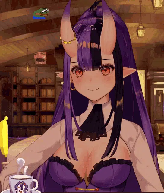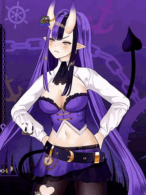 Tade, the oni girl from Dungeon Meshi, holds a spiked club with a determined expression against a brick wall.
