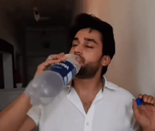 A man, identified by metadata as Ahad Raza Mir from the drama Dunk, drinks water from a bottle.