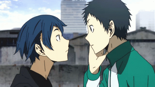 Aoba Kuronuma and Mikado Ryugamine from Durarara!! in a surprised and wondering moment.