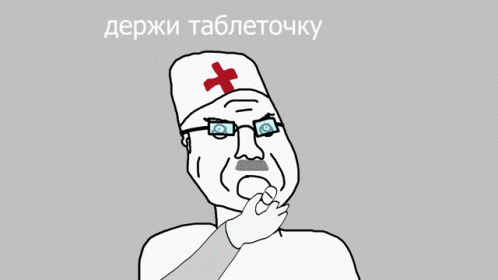 A cartoon doctor with a red cross on his hat offers a pill, saying 'hold the pill'.