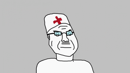 A drawing of a nurse with a red cross hat, expressing dark humor about new patients, referencing 'Durka дурка'.