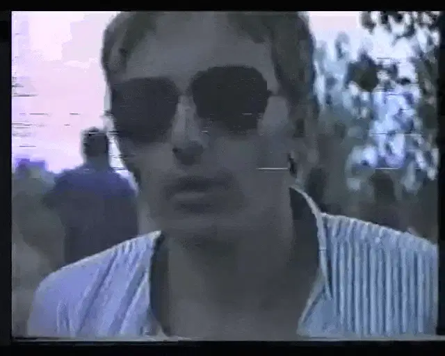 Marija cuddling a small white cat on a couch, with a retro glitch effect.