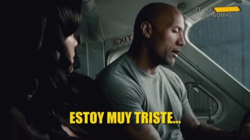 Dwayne Johnson says 'I am very sad, but I can't express it with my face' in a plane scene.