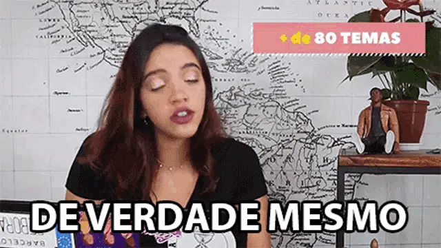 Joana Maré with pink hair sits at a table, with the Portuguese caption 'É verdade' (It's true) displayed.