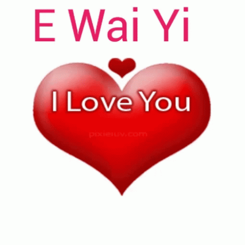 A vibrant animation featuring a large red heart with 'I Love You' text, surrounded by smaller hearts, dedicated to E Wai Yi.