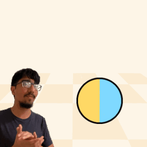 a man wearing glasses stands in front of a yellow and blue circle with the words golden ratio + sticky goldsticky above him