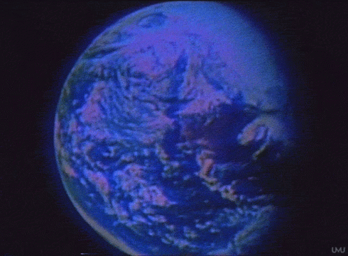 Stylized blue and purple Earth image with a grunge aesthetic, featuring 'UWU' text in the bottom corner.