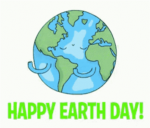 Animated cartoon globe with a sad face, then smiling, and 'Happy Earth Day!' text.