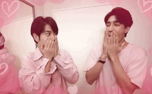 Earthmix and Mixxiw share a cute, surprised reaction, covering their mouths with pink heart overlays.