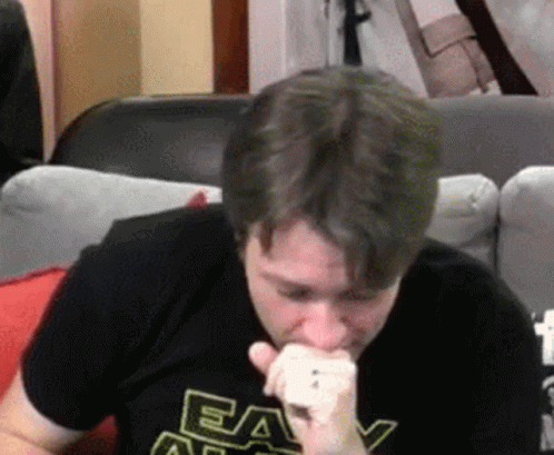 Brandon Jones of Easy Allies reacts emotionally, covering his mouth, then looks up and speaks.