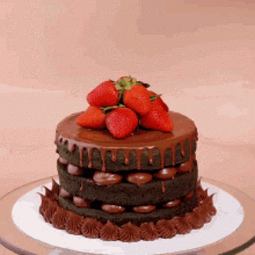 Decorating a decadent chocolate cake with fresh strawberries and chocolate shavings, creating a beautiful dessert.