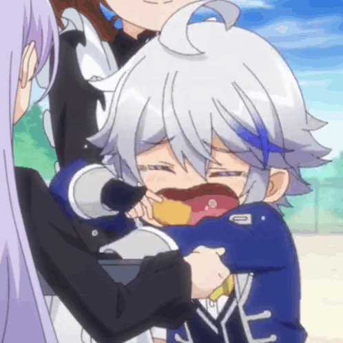 Cain von Silford from 'The Aristocrat's Otherworldly Adventure' is overwhelmed with happiness while eating.