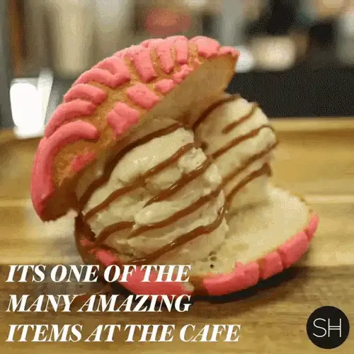 A man wearing an NY hat and a 'GOOD MORNING' shirt eats breakfast, including fries and fruit, at a restaurant.