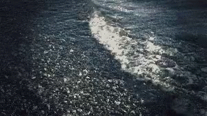 Close-up of shimmering water with light reflections on a dark, textured surface, creating a dynamic visual.