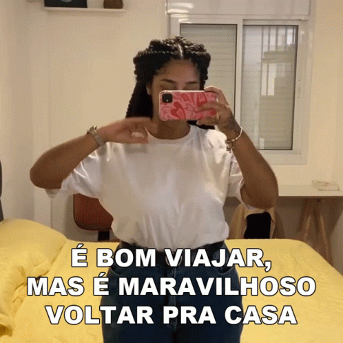 Joicy Eleiny takes a mirror selfie, sharing the sentiment: 'It's good to travel, but it's wonderful to come home.'