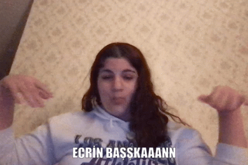 Ecrin Başkan enthusiastically declares her presidency, making a face and gesturing with her hands.