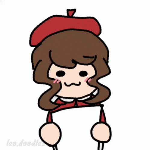 Cute cartoon girl with a red beret holding a blank sign, inspired by Edgar Valden / Eddie Valden.