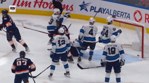 Klim Kostin celebrates a goal for the Edmonton Oilers during an NHL hockey game.