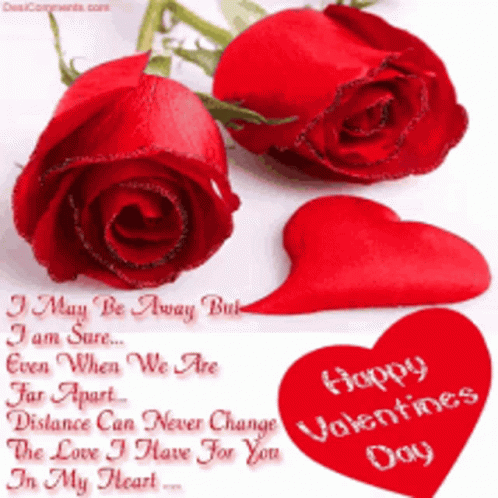 A heartfelt Happy Valentine's Day message with two beautiful red roses and a vibrant red heart.